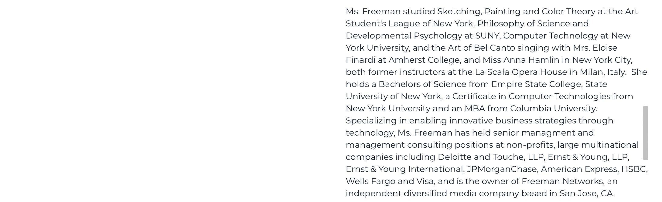 - Amy Lynn Freeman: Artist, musician, and expert in financial services, small business management, and management consulting.