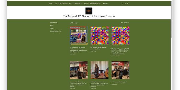 Shop Harmonics(TM) is a proprietary method of creating a Personal Virtual Commerce Management System(TM). This page is an example of such a method created for the Personal TV Channel of Amy Lynn Freeman.
